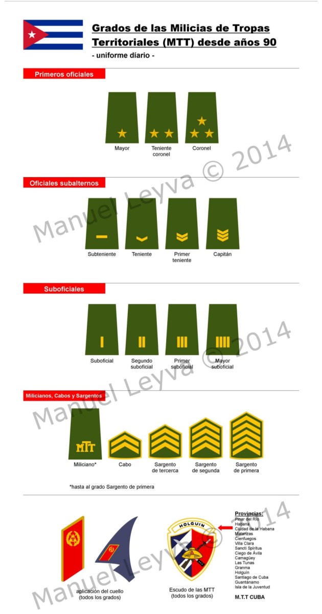 Grados MTT ab 1995 Published 8. Januar 2015 at 930 × 1772 in Effekten ← Vorherige Nächste → Milicias de Tropas Territoriales ab ca. 1995 (Dienstuniform / service uniform / uniforme diario) Gefällt mir Wird geladen …