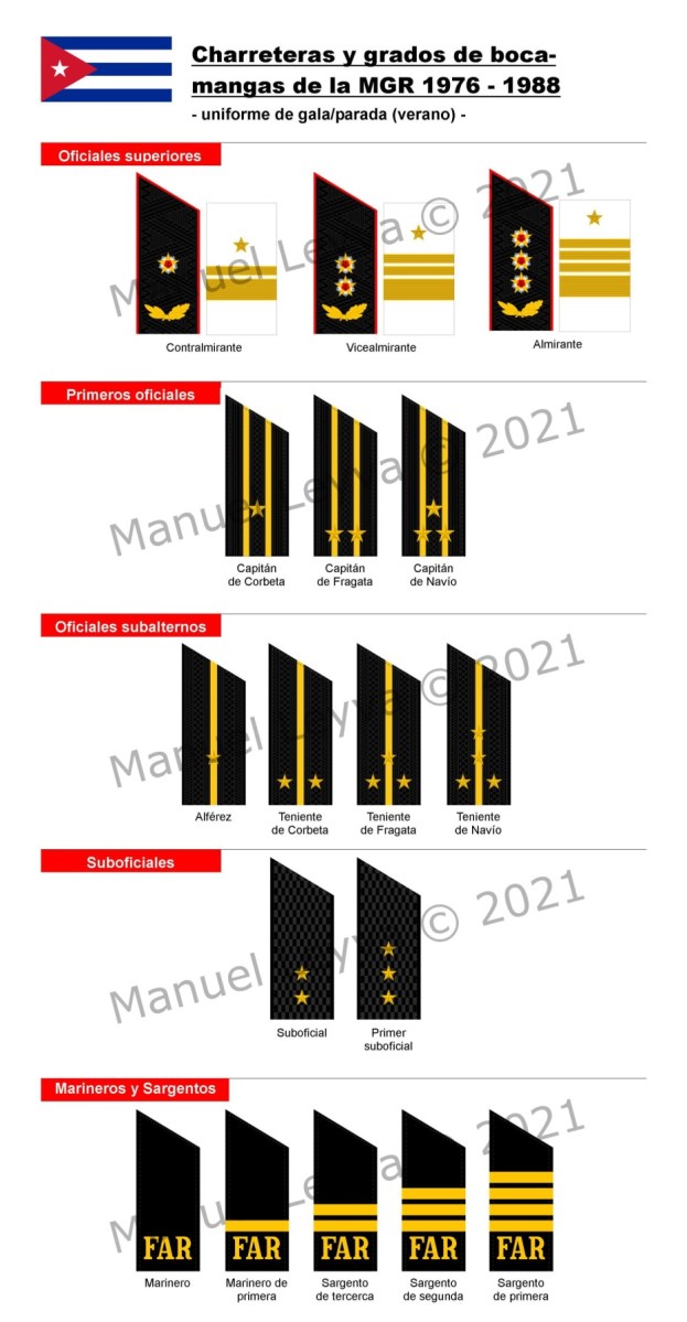 Grados MGR Sommer 1976-1988 Version 2021 Published 31. Dezember 2021 at 930 × 1790 Marina de Guerra Revolucionaria – uniforme de gala/parada (verano) – 1976-1988
